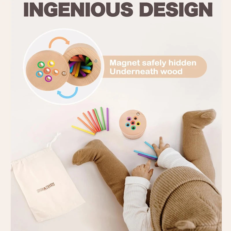 The LittleBunnies™ Montessori Colour Matching Stick Board is designed to support your child's development. Made with wooden sticks and a colour-sorting bottle, this toy targets fine motor skills and is suitable for toddlers ages 18 months to 3 years old. Through play, children can practice colour recognition and hand-eye coordination by sorting the 12 sticks into corresponding holes. This interactive toy promotes curiosity and facilitates exploration, laying the groundwork for cognitive development. Get involved by rolling the die and joining in on the fun!